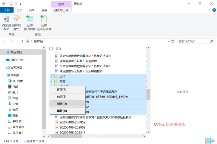 当U盘文件删除后,如果想要恢复删除文件的话,有个很简单方便的方法,下面跟我做:首先按住电脑键盘上的“Ctrl+Z”按钮,这样可以对删除的文件进行撤销处理,就可以轻松找回我们丢失的相关数据了。需要注意的是Ctrl+Z恢复只适用于文件删除后,没有进行下一步操作。如果有其它操作的话,也都是无法进行恢复的。