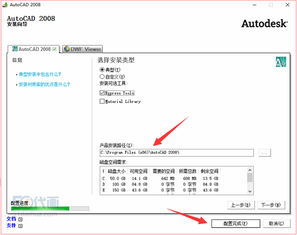 - 一般保持默认即可 点击“安装”开始CAD2008 32/64位中文版的安装。