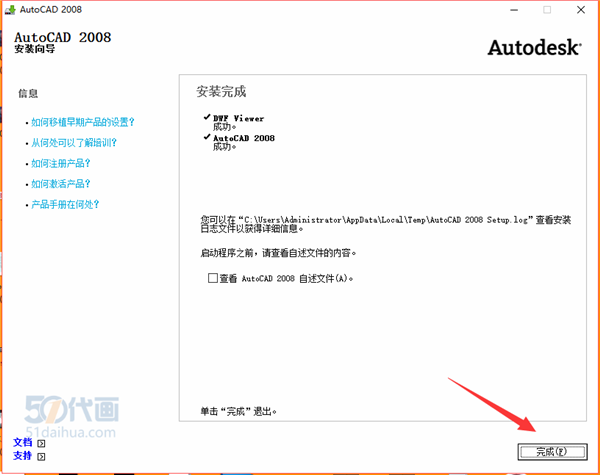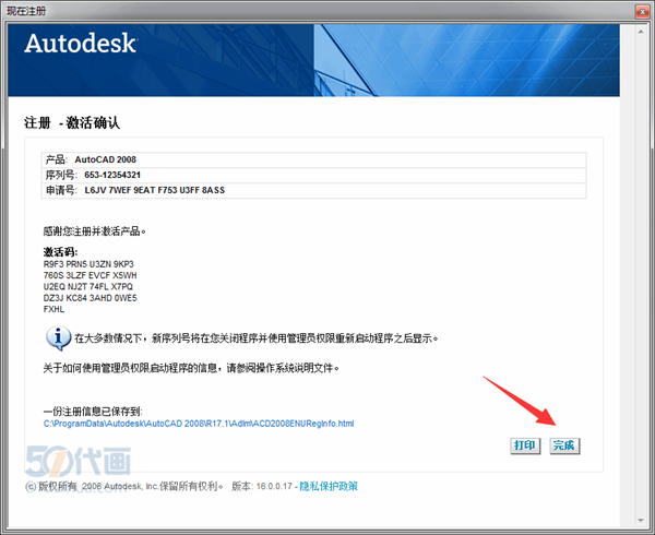 - 点击“完成”,下面开始讲解AUTOCAD2008破解方法。