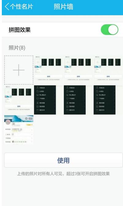 然后就添加8张图片,然后再打开拼图效果自己调节排列方式,最后再点击使用