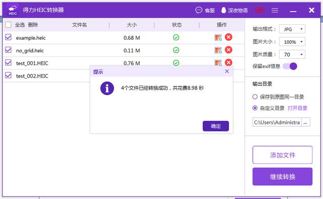 然后,运行软件,我们可以通过"添加文件"按钮把HEIC图片添加到软件上,也可以直接拖动这些文件到软件上。