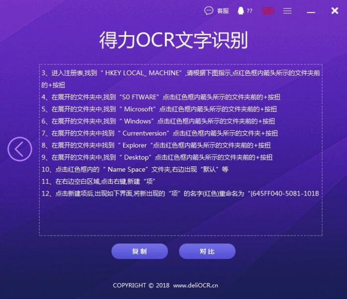 最后,识别结果出来后,就可以点击下方的【复制】按钮,将文字粘贴保存起来。建议保存文字的时候校对一遍结果,可以点击【对比】按钮,直接对比识别结果。不管是哪款文字识别软件,都不能百分百正确,会因为图片的清晰度,以及图片上的特殊符号等原因影响到图片的识别准确率。