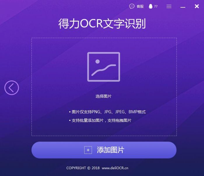 首先从百度搜索并下载安装得力OCR文字识别软件,安装完成运行软件。然后在界面上选择对应的功能,也就是【图片识别】功能。