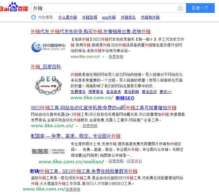 这个案例是老铁SEO在一个SEO培训的公开课上看到的,搜索“外链”这个关键词,百度排名除了自己的产品之外就是它第一,而且还排名很稳定,我观察很久了。可以打开这网站。