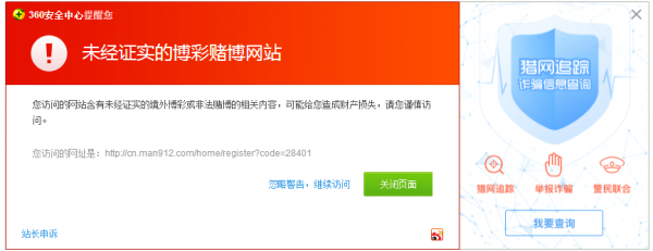 网站被篡改的内容都是加了一些什么,极速赛车,赌博,博彩、赌球,世界杯投注的与网站不相关的内容,而且这个网站代码还做了JS判断跳转,针对于Baidu搜索来的客户,会直接跳转到这个极速赛车、赌博、博彩的页面,导致360提示博彩网站拦截,百度提示风险拦截的图片如下: