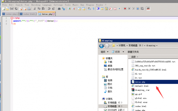 1.网站经过SINE安全技术的安全审计后,在安全的处理过程中发现网站根目录下的datas.php文件内容属于assert类型的一句话木马。