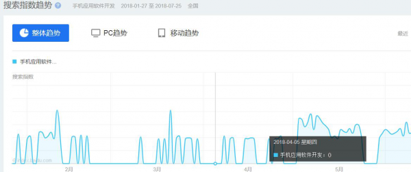 “手机应用软件开发”这个词就是这样一个情况,正常类型的词,绝不可能出现这样大起大落的搜索结果。