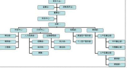 3、企业要根据具体情况(如部门的划分、部门人员职能的划分)制定具体的、整体的、个性的组织架构图,各个部门也要制定部门的、具体的、细分的组织架构图。