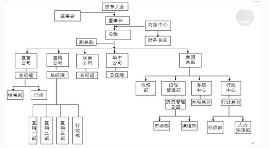 4、例如一家企业的营销中心包括:市场部、企划部、销售部、单证部,那么本企业的营销中心的组织架构图可以制定为: 单个的、具体的、细分的小部门。