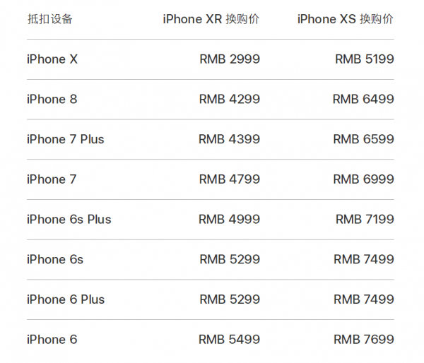 从现在起到限定时间内,用户到Apple Store零售店折抵符合条件的iPhone来换购新款iPhone,即可享受额外的折抵优惠,折抵后,4399元就能入手iPhone XR,6599元就能换上iPhone XS。