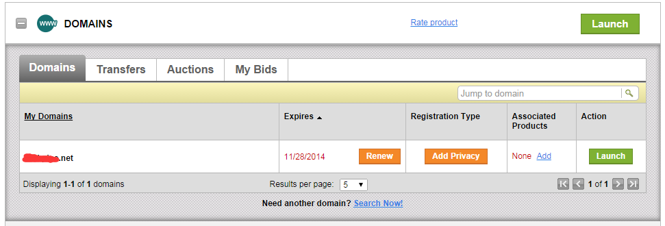 2、登录自己的godaddy账号,在自己的账号下找到要转移的域名,点击右边的Launch,