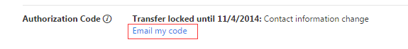修改完“锁定”信息后,点击本页面下方的“emailmycode”,然后在弹出的窗口中点击send,你的注册邮箱便会受到此code,在走到这一步时,我才发现,我的域名由于注册信息修改,暂时被锁定不能转出,只能稍等几天了。在此提醒想转出域名的各位,godaddy会在你的注册信息更改后有60天的锁定,这个时间内是不允许你转出的。