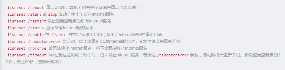可以通过iisreset/?命令来查看