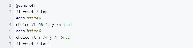 在工作中,需要把IIS停止延时一段时间后重新启动IIS。