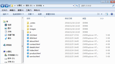 2、然后在里面新建一个html文档,命名为“index.html”,保存iis本地服务器;