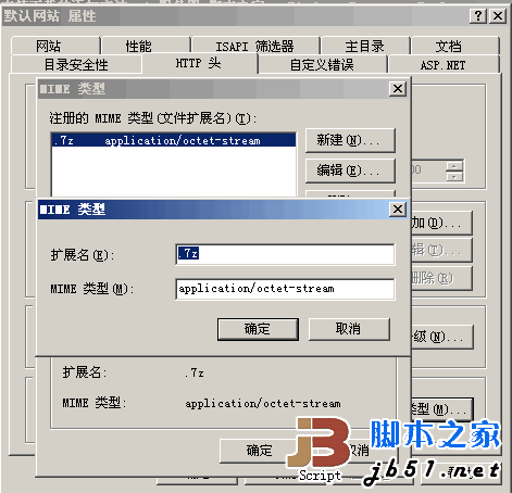 win2003的IIS6默认是不支持7z的,需要手工添加