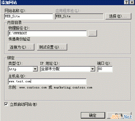 3、测试网站。您可以在新建的网站路径下存放测试页面来访问。进一步的详细配置请参看IIS帮助手册。