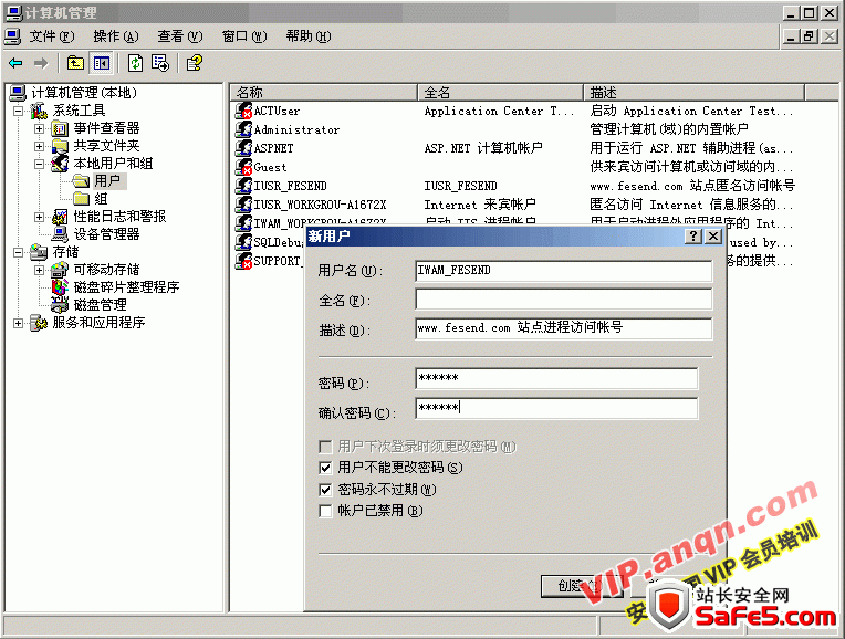 ⑶建立IUSR_FESEND及IWAM_FESEND帐号