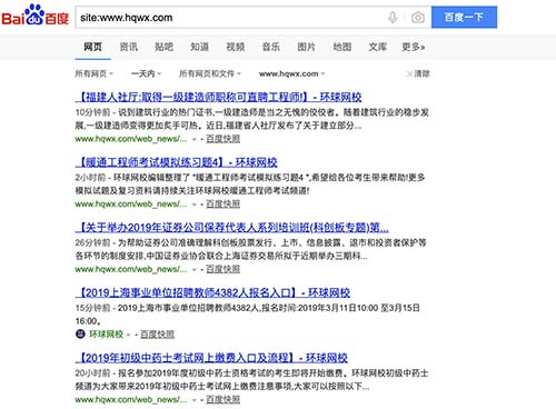 我在刚加入环球网校的时候,他们的网站(www.hqwx.com)已经将近1年的时间在百度的收录少之又少。在我去应聘的时候,CEO知道我在SEO方面有些能力,就令我尽快解决网站不收录的问题。