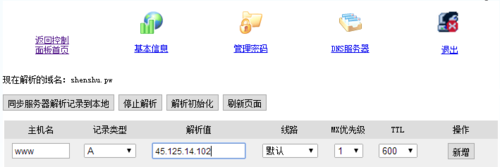 5、一般情况下,我们做的是A记录解析,把WWW解析网站服务器或者是空间的IP地址。如图,主机名填写www,记录类型选择A记录解析,解析值填写服务器或者是空间的IP地址。