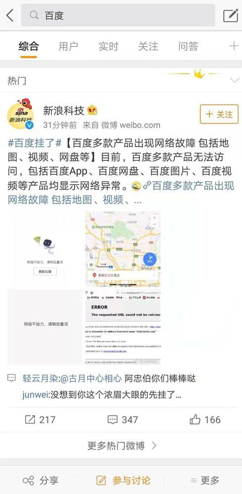 百度的官方微博号随即确认该消息,并表示正在修复中。
