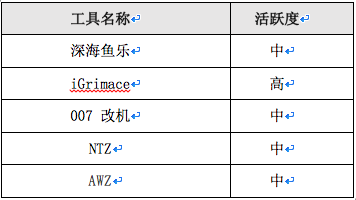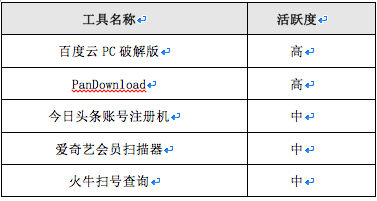下表专门列出了监控到的活跃账号类工具软件,有眼熟的吗?