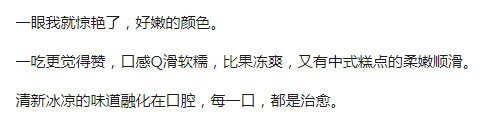 我开始准备暖心故事,找了一篇关于吃豆腐脑的故事,把形容豆腐脑的部分移花接木至薄荷凉糕,这俩玩意儿在口感属性上很像,吃货应该能懂我在说什么: