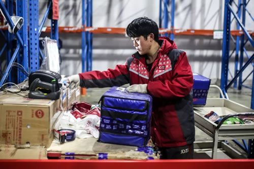 京东创始人刘强东骑电动三轮车为顾客运送货物