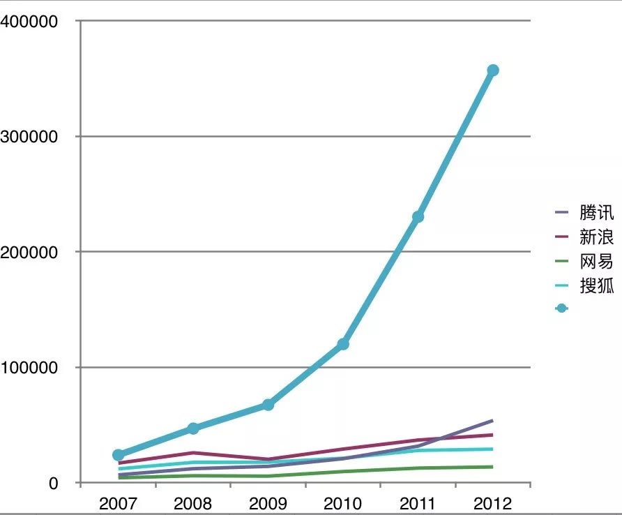 前不久,在一次行业会议上,“扯氮集”魏武挥放了一张互联网巨头们历年广告营收变化的曲线图: