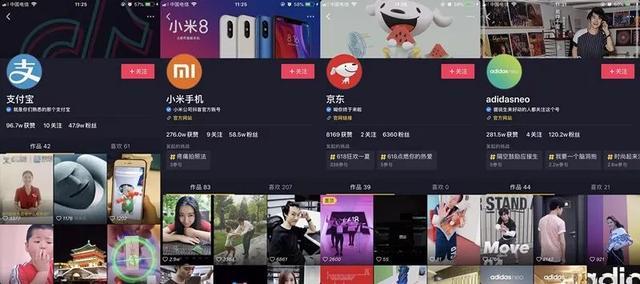 光环属性,比如游戏企业号「剑侠世界2」发布的195条作品里,有108条超过了1w赞,这并不完全是靠抖音算法推荐获得的流量,该号旗下70W粉丝的力量功不可没。另外像阿里、小米这类自带光环的企业,内容的互动数据明显高于其他。