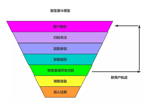 图中是一个常用的裂变流程,可以很清楚看到,随着步骤增多,用户流失也越大。这意味着,我们需要想办法缩短步骤流程。