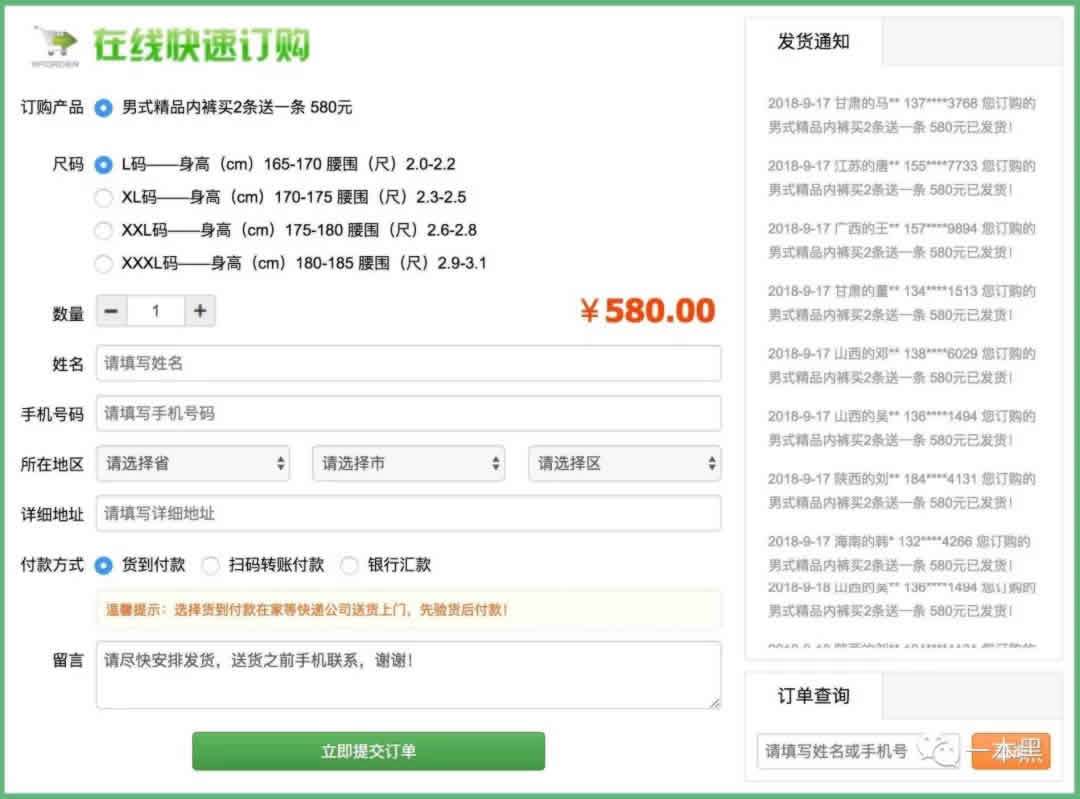 这是一款在竞价单页网站上的PHP在线订单管理系统,原本被用来做货到付款类交易,但因为它可以在线简易生成下单页面,故吸引了大批涉及成人情趣、保健按摩等领域的商家, 现在,它俨然成了“黑”商品骗局的推手。