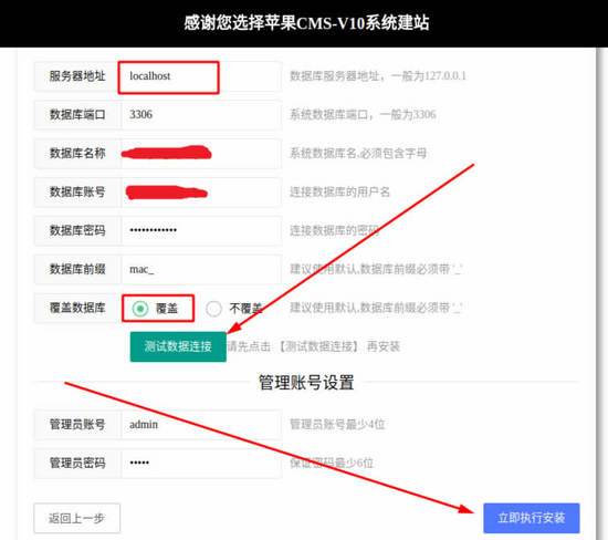 4、打开你的域名,会自动跳转到程序安装界面,设置好数据库以及你的账号和密码,然后登录后台;