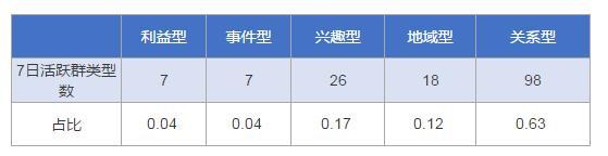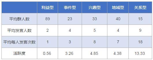 活跃度:关系型>兴趣型>地域型>事件型>利益型
