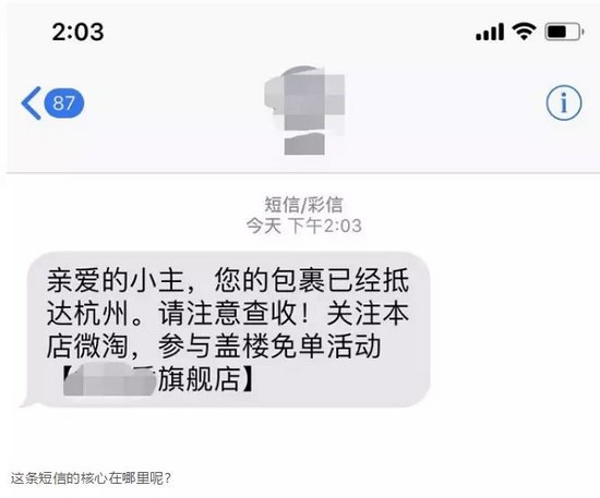 打开手机看到这条短信,你打开淘宝,看一下具体的物流信息,然后顺路就把店铺关注点掉了。