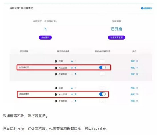 如果没有人管理这个群聊的话,那么我们尽量都把他设置成关注店铺,他可以很大效率积累粉丝。