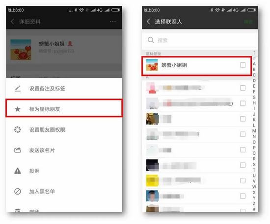 12、如果每次建群都要拉固定的那几个人进群,将对方设为星标朋友,每次拉人进群时,他们就排列在最前,无需搜索。