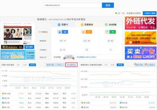 第二步,把记录的网址放到5118、爱站、站长网挖掘出有排名的关键词,然后把这些关键词都导出来,这边5118为例。