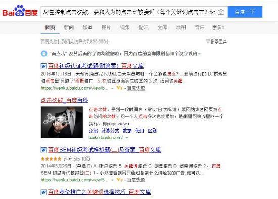 尽量控制点击次数,要和人为的点击比较接近(每个关键词点击在2-5次左右),从百度页面点击进去关键词网站页面,待2-10秒(页面不要关闭,时间待调整),再次从百度搜索进入,点击关键词页面进入网站,待10秒左右,并且最好可以再点击几次页面内的其他链接。确保整个过程用户停留在网站的时间大于1分钟以上。