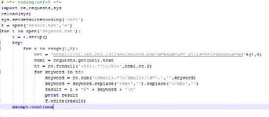 第六步,在虚拟机里面搜索,效率很低,那么可以利用python,用虚拟机IP作为网址,具体代码如下图,那么就可以得到标签关键词对应的文章,生成对应的标签页。