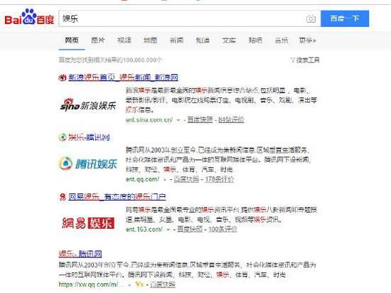 第一步,假定做一个娱乐网站,在搜索引擎上搜索“娱乐”二字,挖掘出对手网站,把网址记录下来。