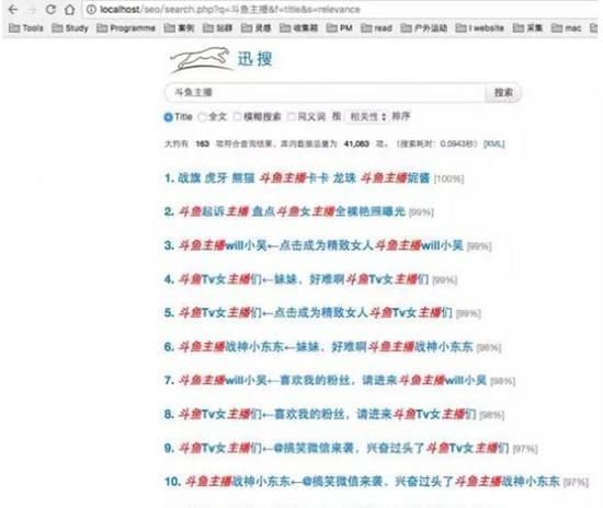 第五步,采集好内容之后,那么就可以构建是本地化搜索引擎,如火端搜索,xunsearch等,然后把内容导入本地搜索引擎当中,这里以xunsearch为例,虚拟机新建linux系统,搭建xunsearch系统,具体安装可参考《xunsearch安装步骤》,最终得到的搜索引擎如下图,那么就可以把我们的目标关键词放在搜索引擎搜索。