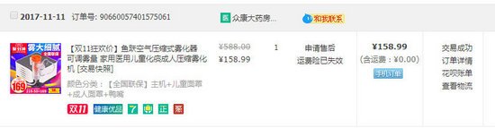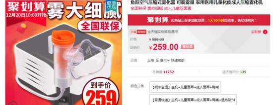 去年双十一,因为家里有小朋友,就帮忙买雾化器,对比了好几家,觉得鱼跃的一款不错,当时看的时候是三百多一款,因为马上要双十一了就没买,就收藏了几家,打算双十一略微便宜些再买。