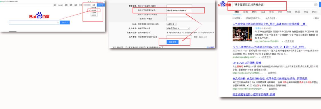 所以取标题之前,先将你想取的标题在百度搜索一下,打开百度,右上角“设置”-“高级搜索”,然后按下图2中所框出的位置,输入你想取的标题,点击“高级搜索”。如果所搜出的结果中没有与你相似的标题(如下图3),说明这个标题还没被人用过,那么你安心用就可以了。