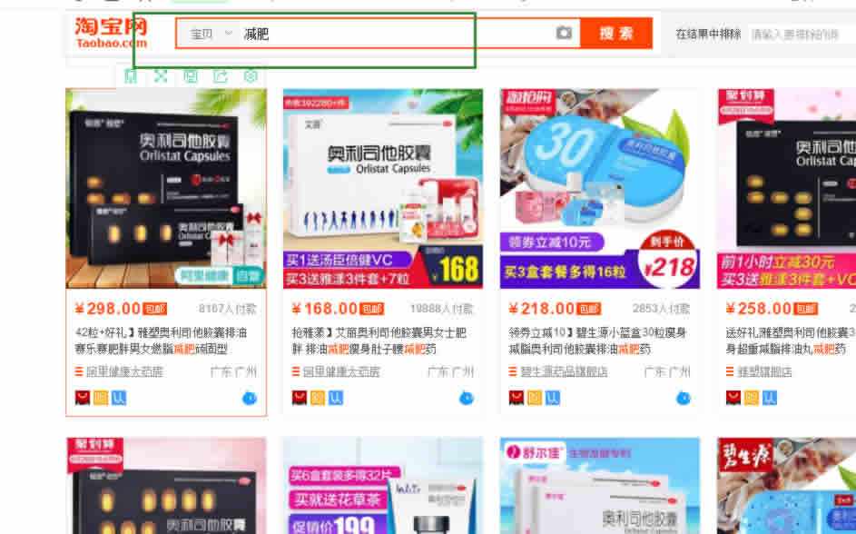 比如我在淘宝搜索减肥,可以搜出来好多各种品牌的减肥产品,如图: