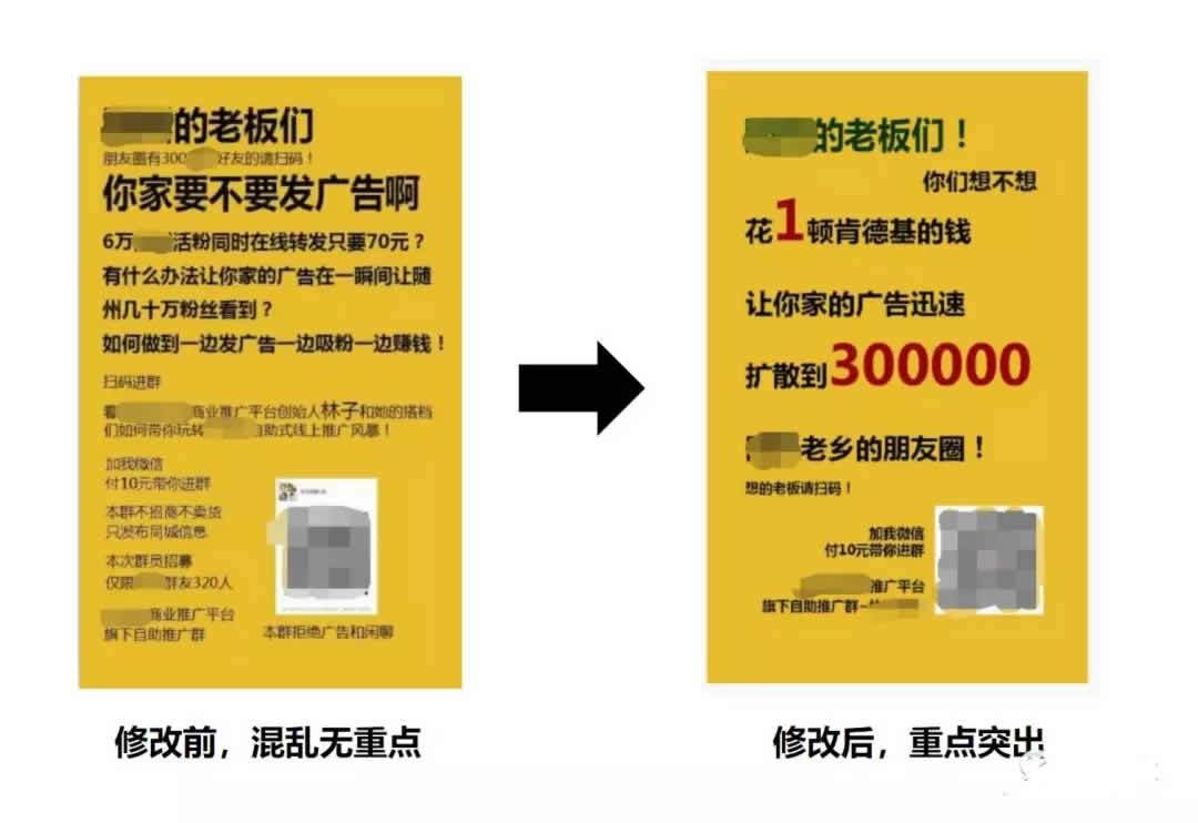 做海报有一个常见的误区,很容易堆砌大量关键词,想通过一张海报就把所有事情都展现出来 。尽管对于你来说这些内容很重要,可在用户角度上,不过是密密麻麻的一堆字。