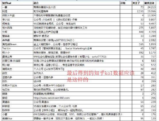 为了省去大家手动找知乎KOL的麻烦,小纯特意花了两个晚上给大家写了工具,可以看到kol取名、简介,关注数量、关注者数量。