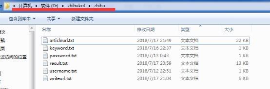 第三,点开zhihu文件夹,填写知乎账号,密码,以及你公众号定位的关键词,其他三个txt为空,不用填写