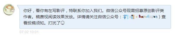 这是我在简书写了第四篇影评后收到的约稿。但是他要首发,我当时正调到总公司太忙就没写了。