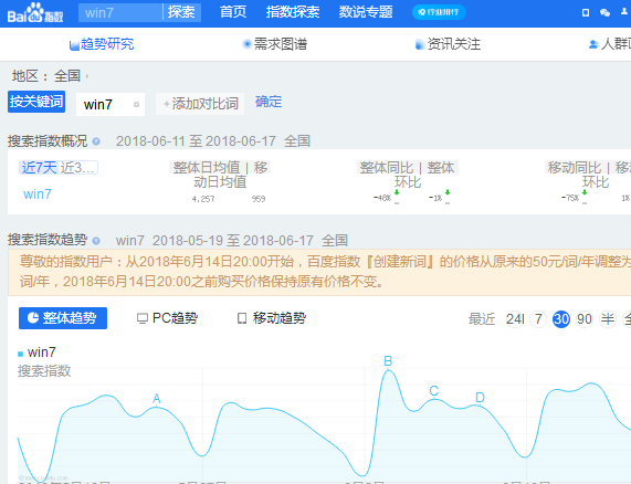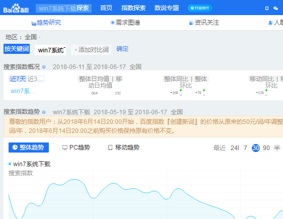 看看 win7 这个词的百度指数。